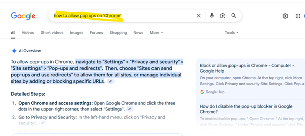 This is something that you need to change your browser setting on your PC or laptop. Please Google “How to allow popups on ‘your browser name” and follow the instructions. See example below with Chrome: